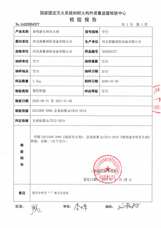 此滅火劑是(廚房自動滅火裝置)滅火劑,是一種低PH值(8-9)有機鹽混合液體,用于快速撲滅食用油油鍋和煙罩火災,通過泡沫覆蓋進行滅火。